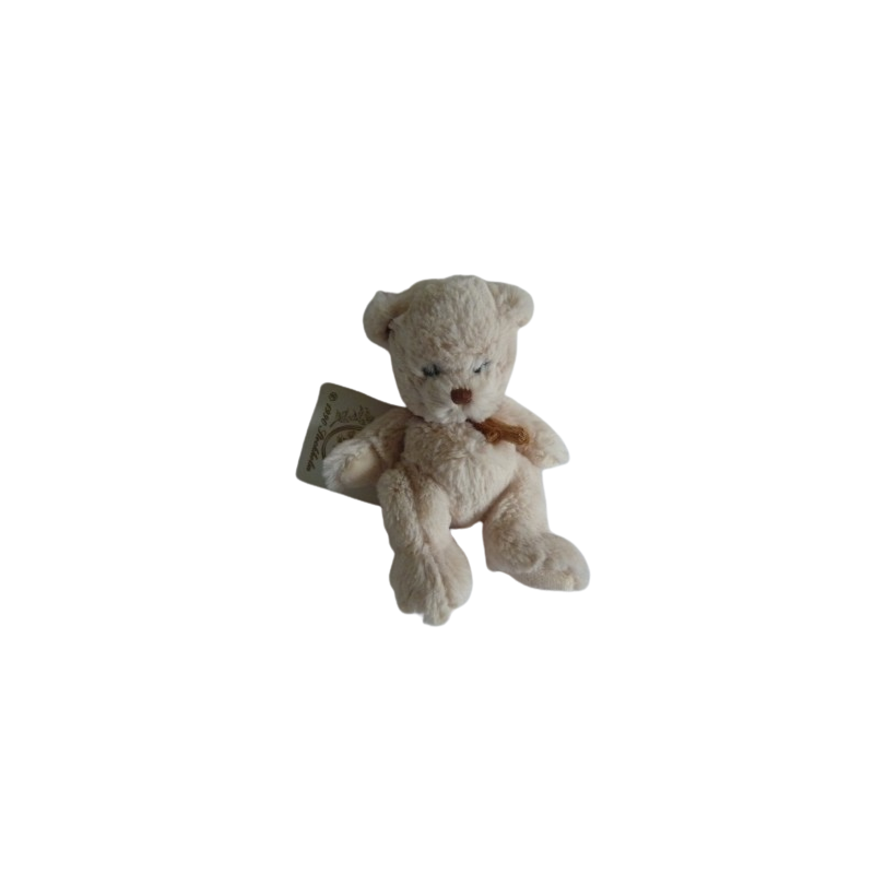 Doudou peluche ours 20 cm environ, billes au popotin et pattes, beige écharpe marron. Etat : NeufDestinataire :