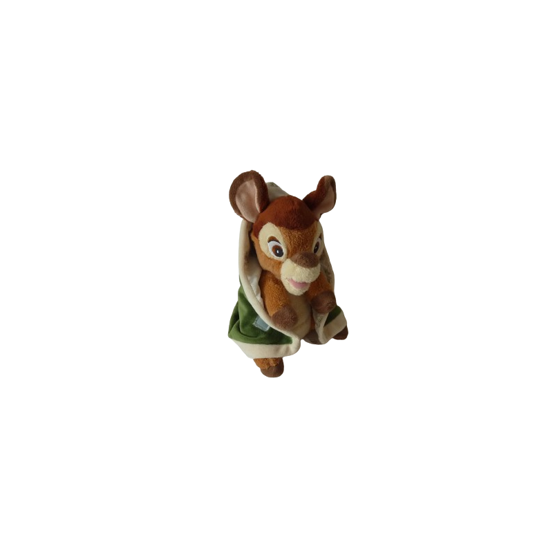 Doudou peluche couverture Bambi marron crème 30 cm environ, couverture verte et moifs 26x26 cm environ. Etat : Comme neufDestinataire :