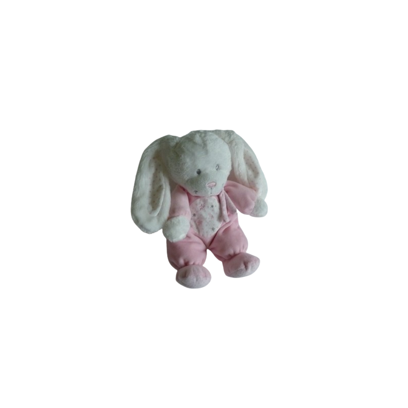 Doudou peluche lapin 28 cm environ, rose blanc motif étoiles. Etat : Comme neufDestinataire :