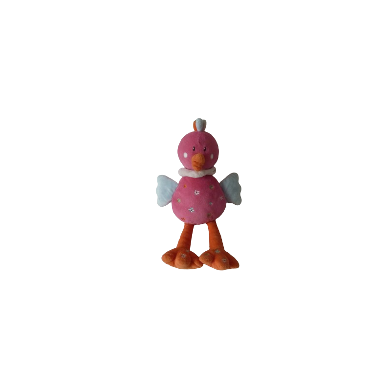 Doudou peluche poule 33 cm environ, rose orange bleu motif fleurs. Etat : Très bon étatDestinataire :