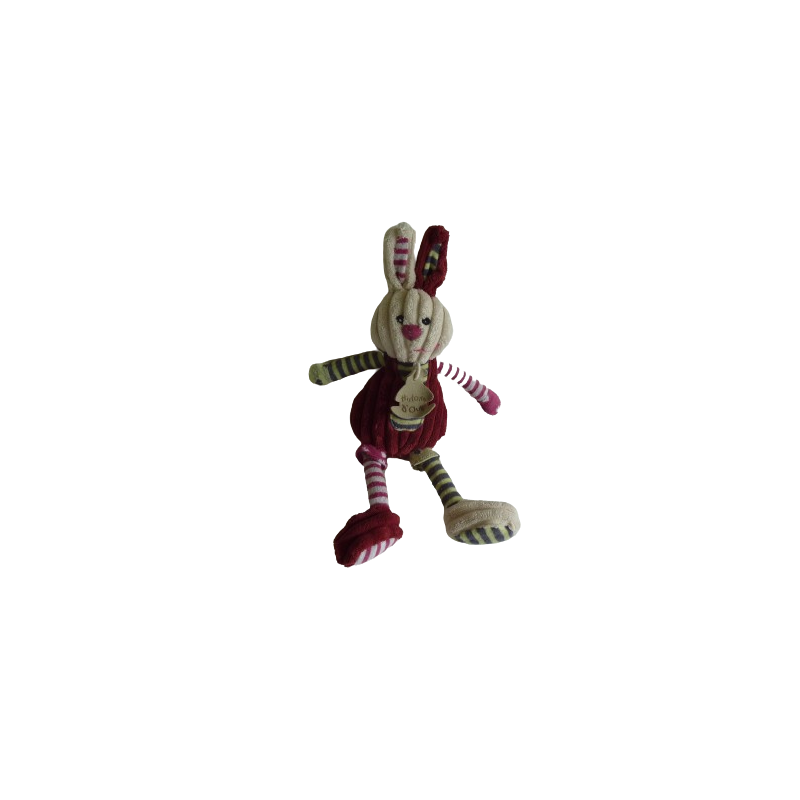 Doudou peluche lapin 28 cm environ oreilles comprises, bordeaux écru rayures. Etat : Très bon étatDestinataire :