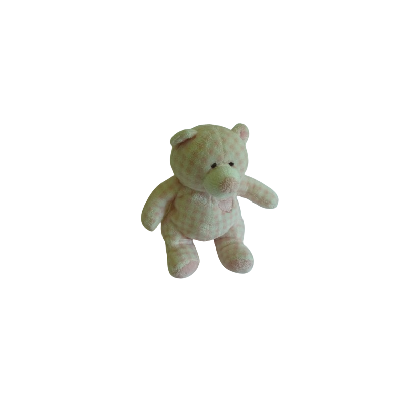 Doudou peluche ours 22 cm environ, rose blanc cœur rose brodé, grelot. Etat : Comme neufDestinataire :