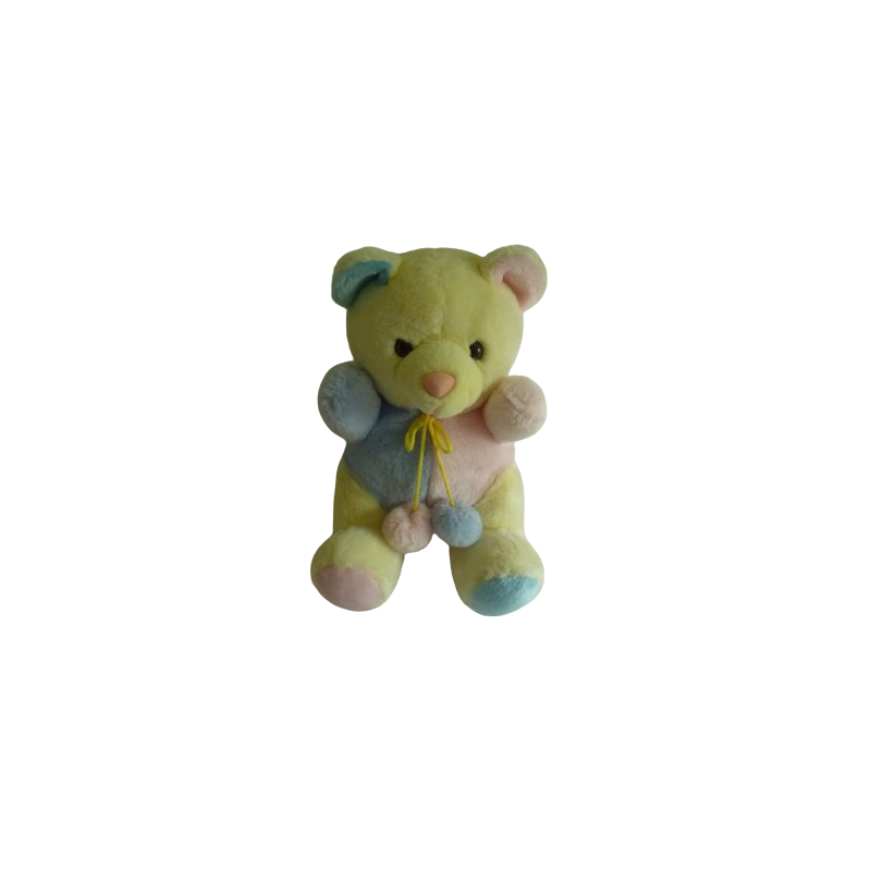Doudou peluche vintage ours 38 cm environ, jaune rose bleu. ATTENTION : NE CONVIENT PAS A UN ENFANT DE MOINS DE 3 ANS. Etat : Comme neufDestinataire :
