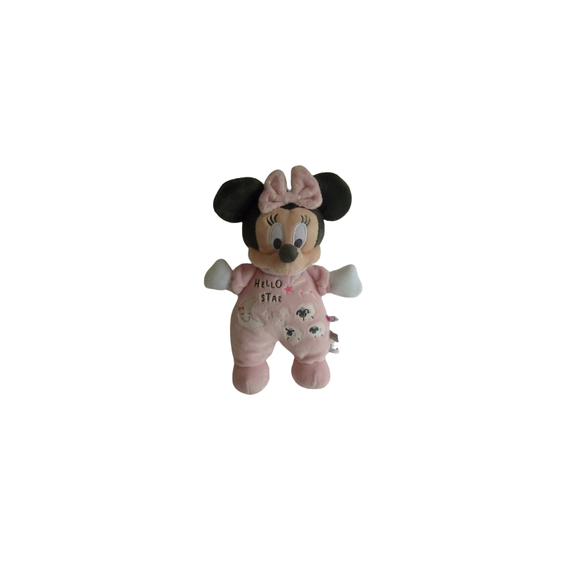 Doudou peluche souris Minnie 27 cm environ, rose motifs moutons étoiles. Etat : Comme neufDestinataire :