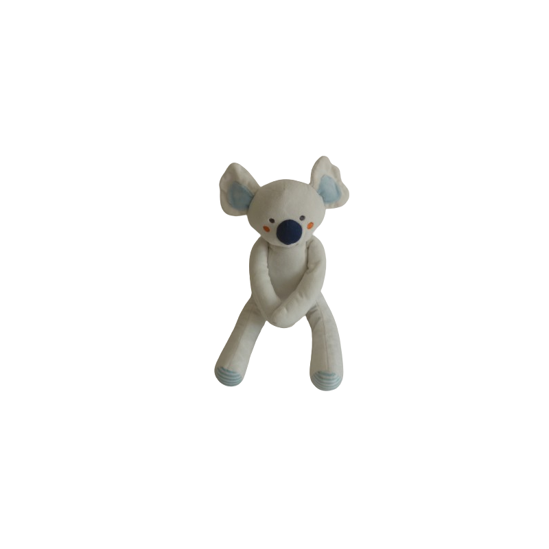 Doudou peluche koala 34 cm environ position assise, velcro aux pattes, blanc turquoise. Etat : Comme neufDestinataire :