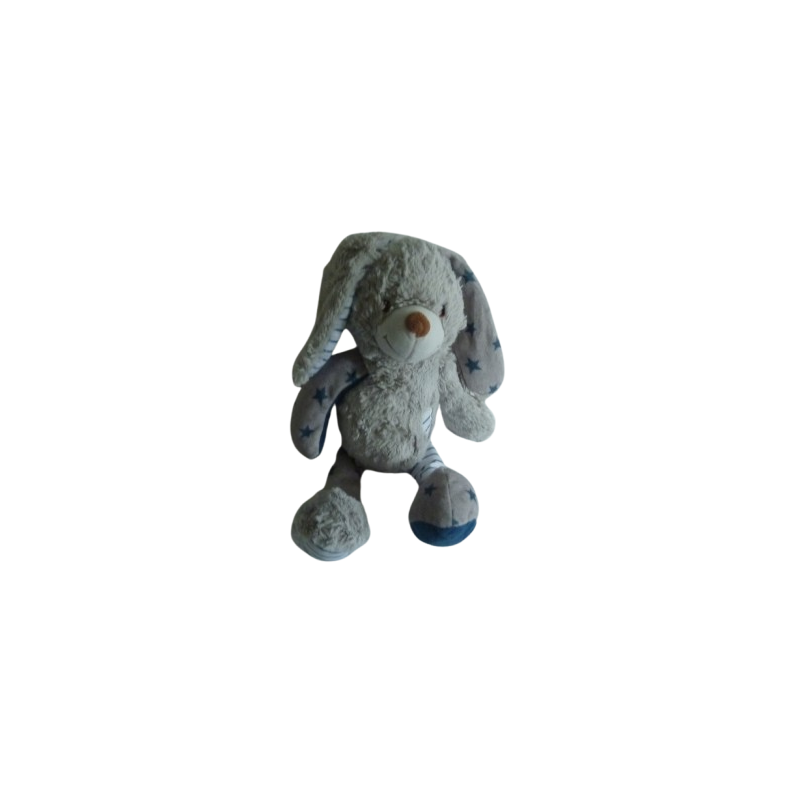 Doudou peluche lapin 36 cm environ, gris motif étoiles coeur. Etat : Comme neufDestinataire :
