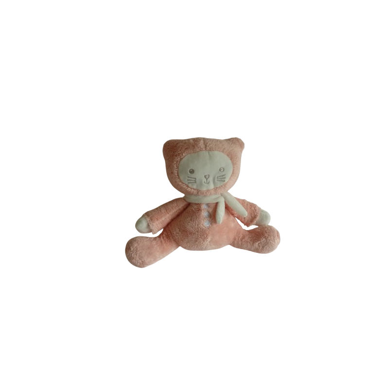 Doudou peluche chat 20 cm environ assis, rose blanc. Etat : Comme neufDestinataire :