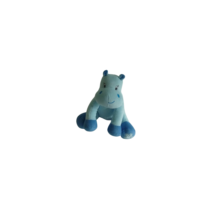 Doudou peluche hippopotame position assise 24 cm environ, grelot, bleu. Etat : comme neufDestinataire :