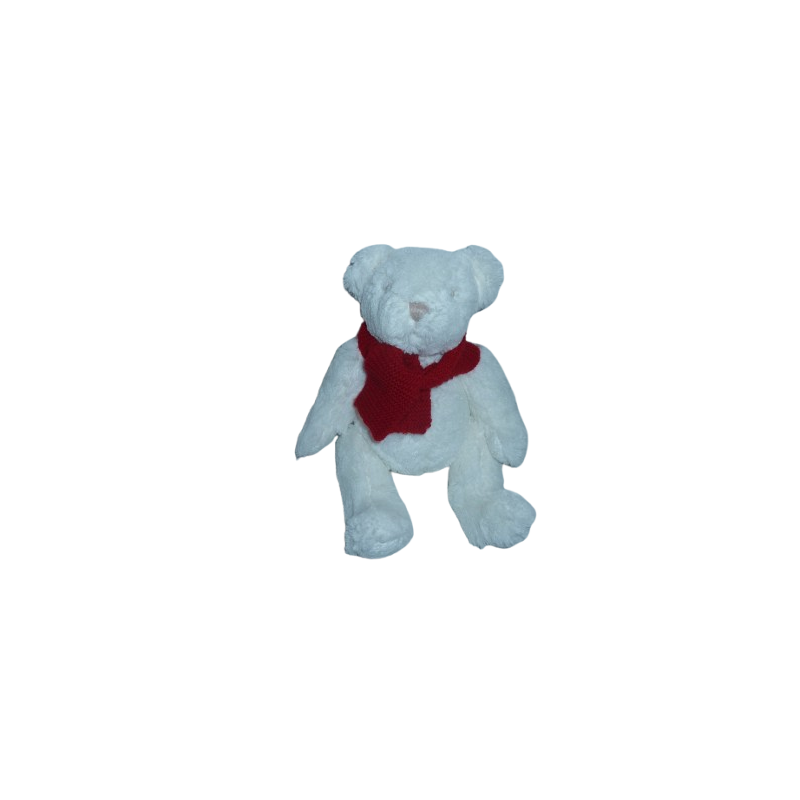 Doudou peluche ours 30 cm environ, blanc écharpe rouge. Etat : comme neufDestinataire :