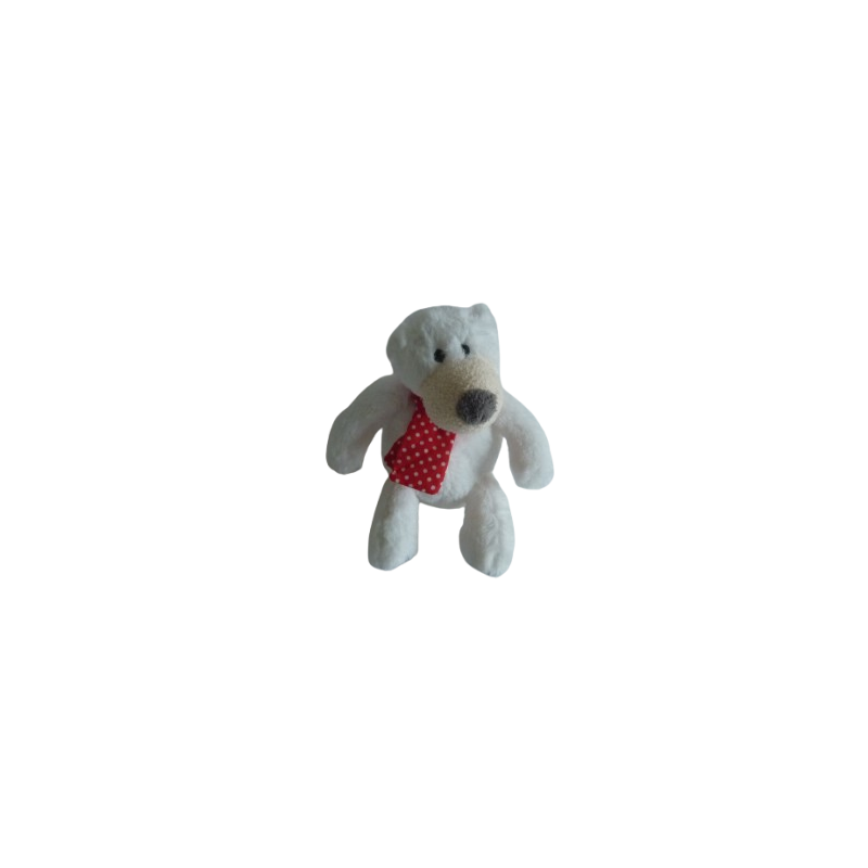 Doudou peluche ours 17 cm environ, blanc museau beige écharpe rouge à pois. Etat : Comme neufDestinataire :