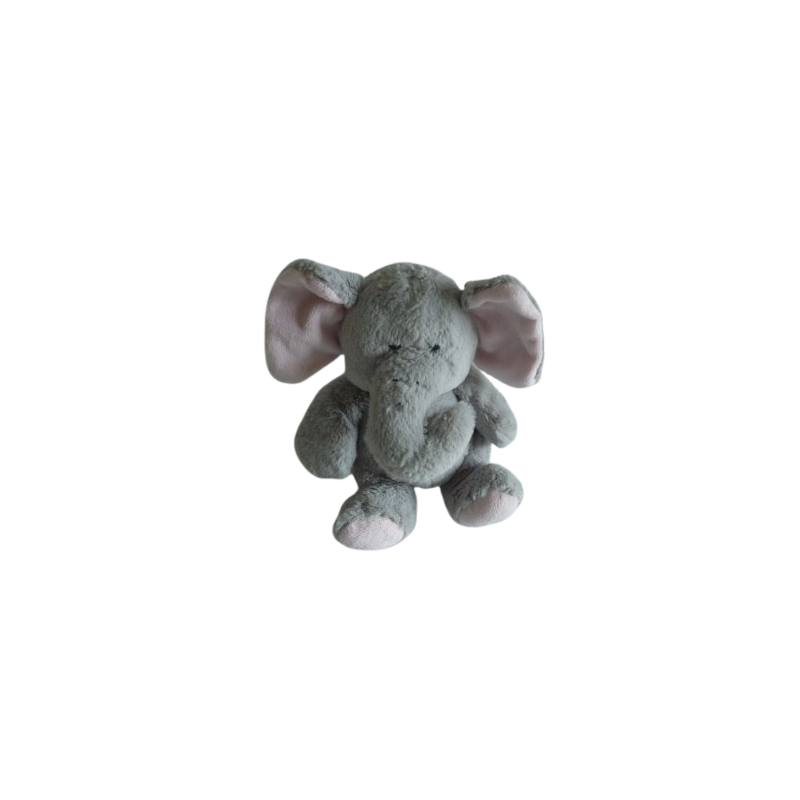 Doudou peluche éléphant position assise 26 cm environ, gris intérieur des oreilles rose. Etat : Comme neufDestinataire :