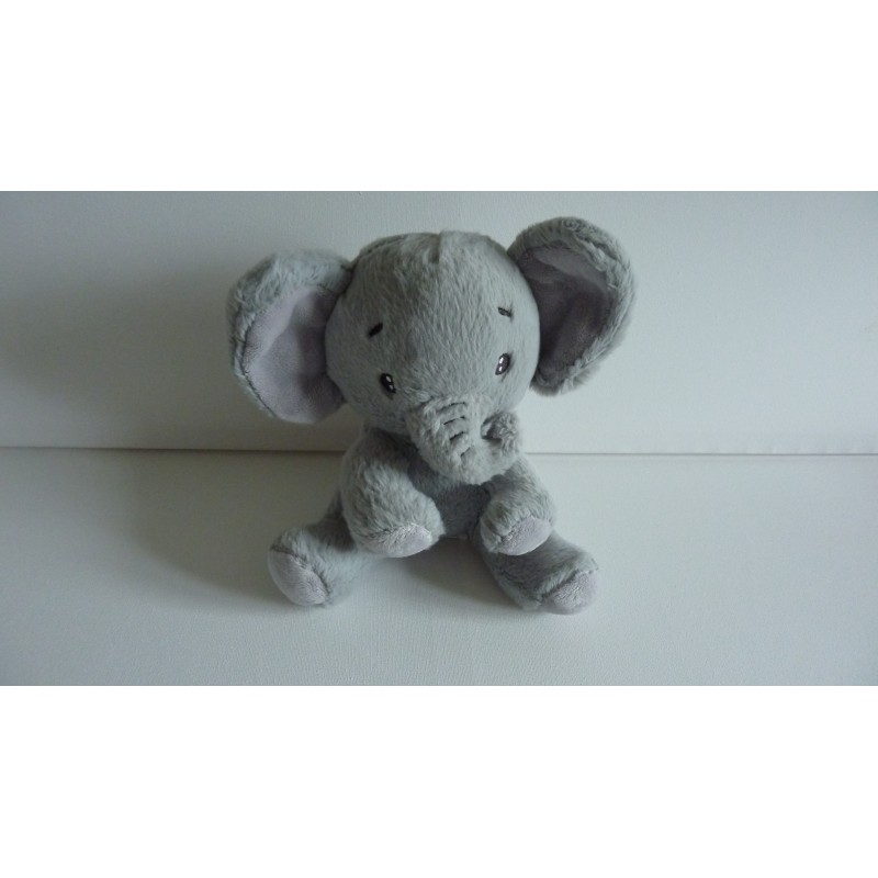 Doudou peluche éléphant position assise 21 cm environ, gris, matière papier froissé aux oreilles. Etat : Comme neufDestinataire :