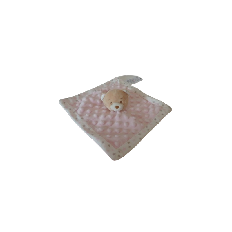 Doudou plat ours 21x21 cm environ, rose ronds en relief motif étoiles. Etat: Comme neufDestinataire :