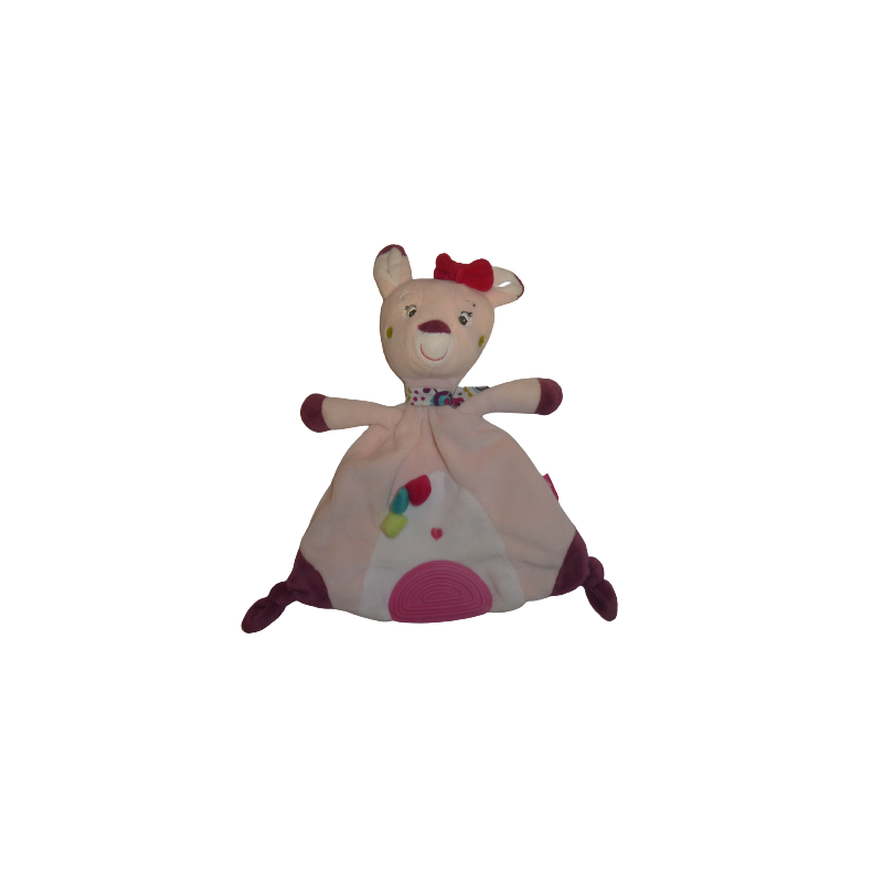 Doudou plat biche 28 cm environ, anneau de dentition, rose pâle violet. Etat : Neuf sans étiquette boutique. DOUDOU DIFFICILE A TROUVER.