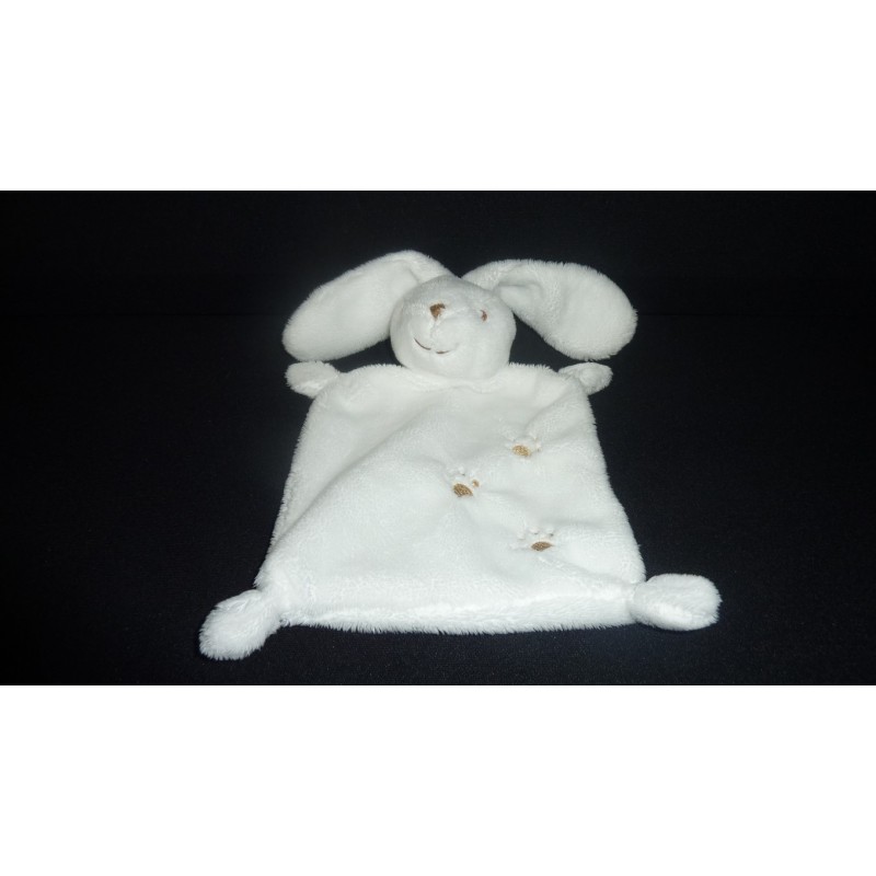 Description du doudou : Doudou plat lapin, coloris : blanc, empreintes de pas brodés. Doudou super doux. Etat : Comme neuf (étiquette de la marque coupée), produit original.Destinataire :