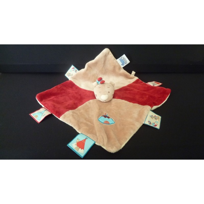 Description du doudou : Doudou plat ours, bordé d'étiquettes. Etat : très bon état (bouloches au verso), produit original.