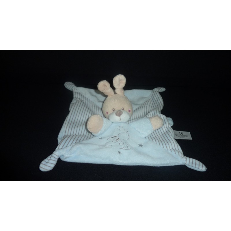 Description du doudou : Doudou plat lapin, attache tétine par velcro, lapin et étoiles brodés. Coloris : bleu. Doudou super doux. Etat : Neuf sans étiquette boutique. Produit original.