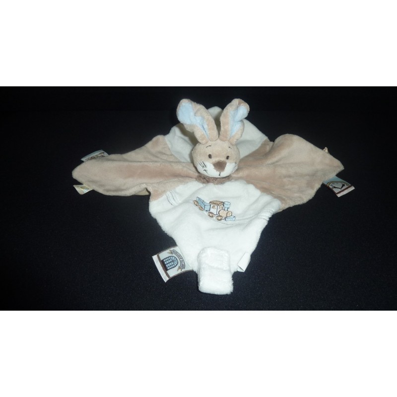 description du doudou : Doudou plat lapin, attache tétine par velcro, bordé d'étiquettes, train brodé. Doudou super doux. Etat : Neuf sans étiquette boutique, produit original.Destinataire :