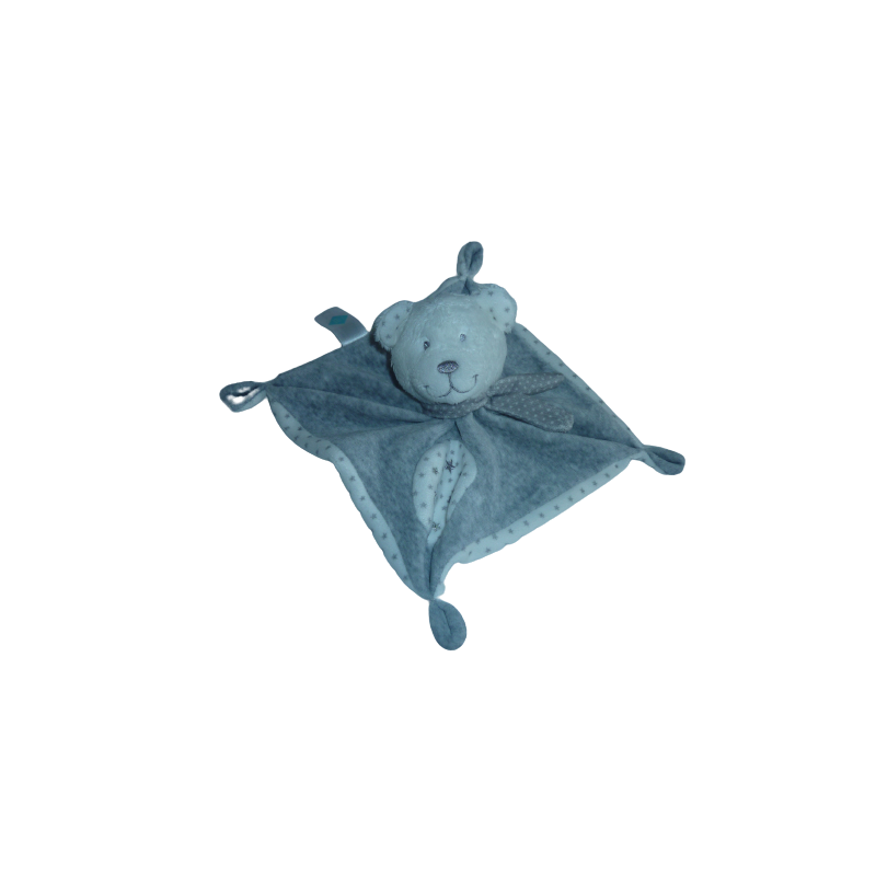 Description du doudou : Doudou plat ours, imprimé étoiles. Doudou super doux. Etat : Comme neuf. Produit original.