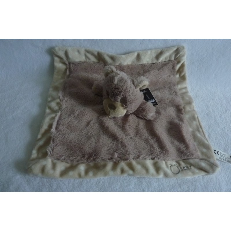 Description du doudou : Doudou plat ours. Coloris : marron, contour et verso imprimé petits pois. Doudou super doux. Etat : Neuf (défaut de courture au verso d'origine, rien de méchant). Produit original. DOUDOU DIFFICLE A TROUVER