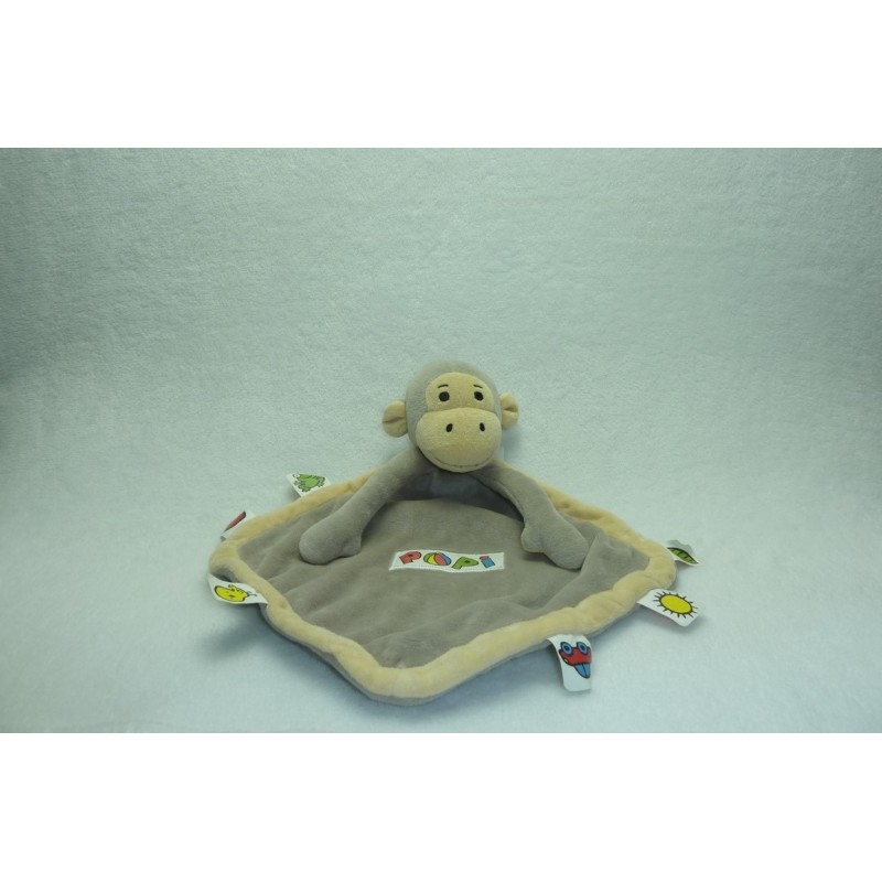Description du doudou : Doudou plat singe, forme losange bordé d'étiquettes. Doudou super doux. Etat : Neuf sans étiquette boutique. DOUDOU DIFFICILE A TROUVER