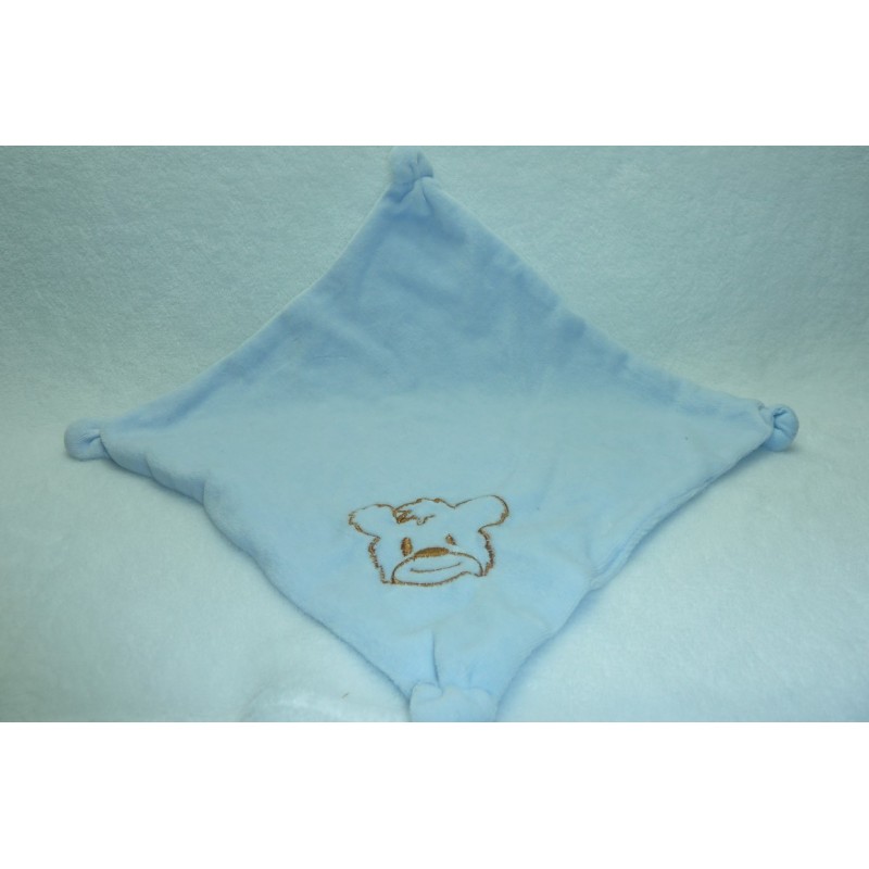 Description du doudou : Doudou plat ours. Coloris : bleu, ourson brodé en marron. Doudou super doux. Etat : Comme neuf. Produit original. DOUDOU DIFFICILE A TROUVERDestinataire :