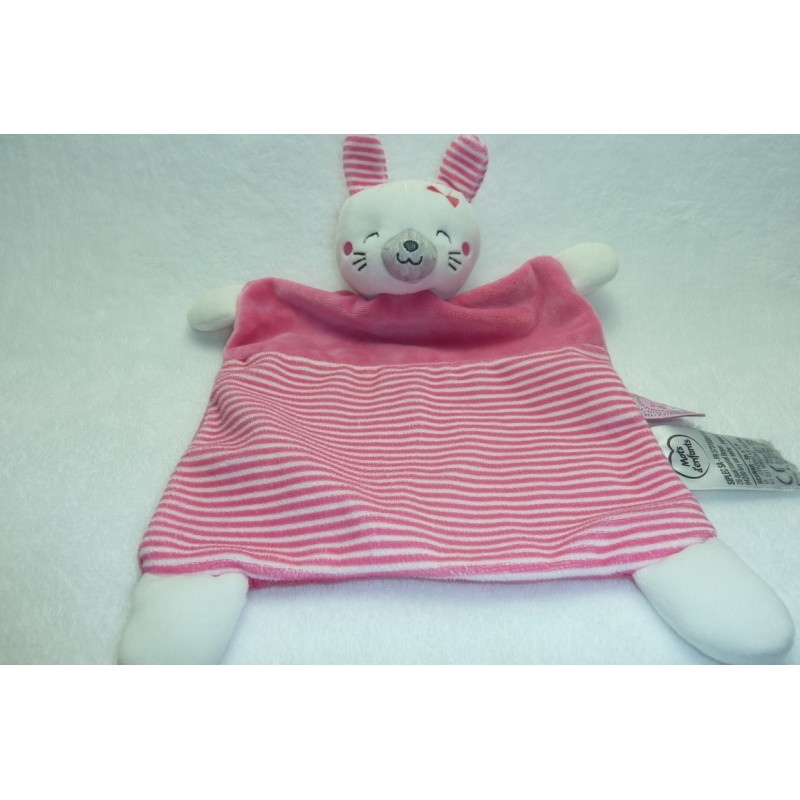 Description du doudou : Doudou plat lapin Mots d'Enfants, 33 cm environ de longueur. Coloris : rose,rayures. Doudou super doux. Etat : Comme neuf. Produit original. DOUDOU DIFFICILE A TROUVER