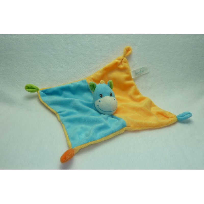 Description du doudou : Doudou plat cheval, 27x25cm environ. Coloris : turquoise, jaune. Etat : Très très bon état. Produit original. DOUDOU RARE DIFFICILE A TROUVERDestinataire :