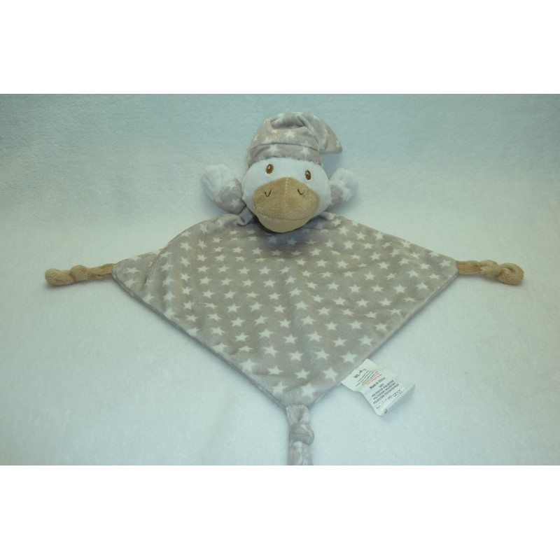Description du doudou : Doudou plat canard de 44 cm environ de longueur, forme losange, 3 nouages. Coloris : taupe, blanc motif étoiles. Etat : Neuf sans étiquette boutique. Produit original. DOUDOU DIFFICILE A TROUVERDestinataire :
