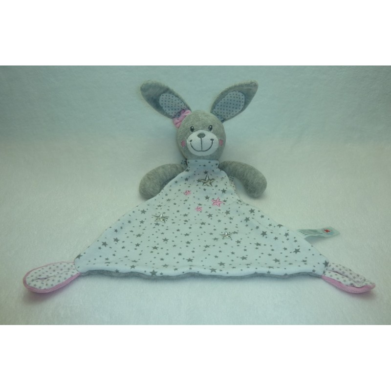 Description du doudou : Doudou plat lapin de 34 cm environ de longueur oreilles comprises. Coloris : gris, blanc étoilé. Etat : Comme neuf . Produit original. DOUDOU DIFFICILE A TROUVERDestinataire :