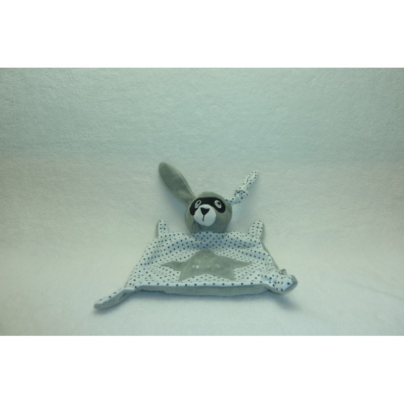 Description du doudou : Doudou plat lapin de 29 cm environ de longueur oreilles comprises. Coloris : gris, tissu blanc étoilé. Etat : Comme neuf . Produit original. DOUDOU DIFFICILE A TROUVERDestinataire :