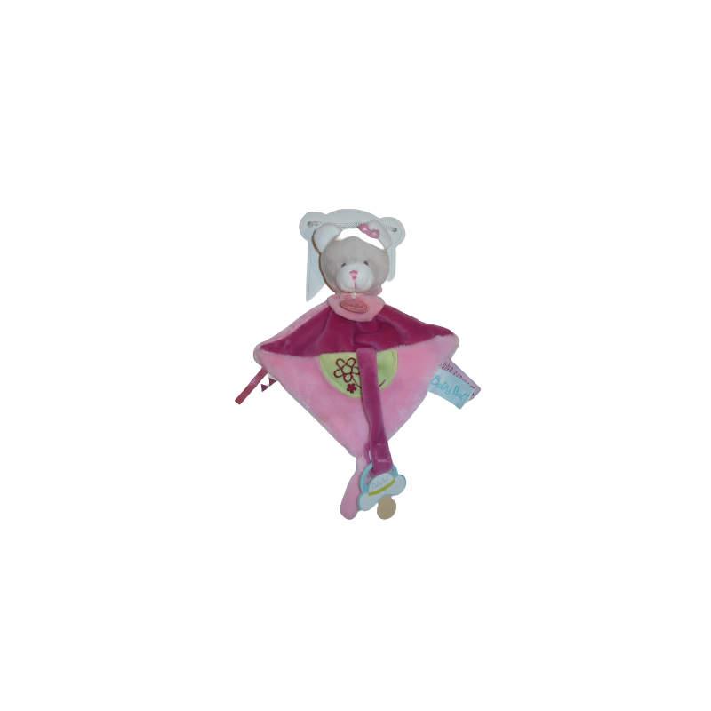 Doudou plat ours attache tétine 27 cm environ, rose framboise. Etat : Neuf. DOUDOU DIFFICILE A TROUVER.
