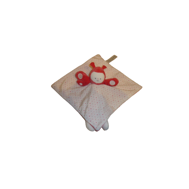 Doudou plat papillon 24 x24 cm environ, rose petits pois. Etat : Neuf sans étiquette boutique. DOUDOU DIFFICILE A TROUVER.