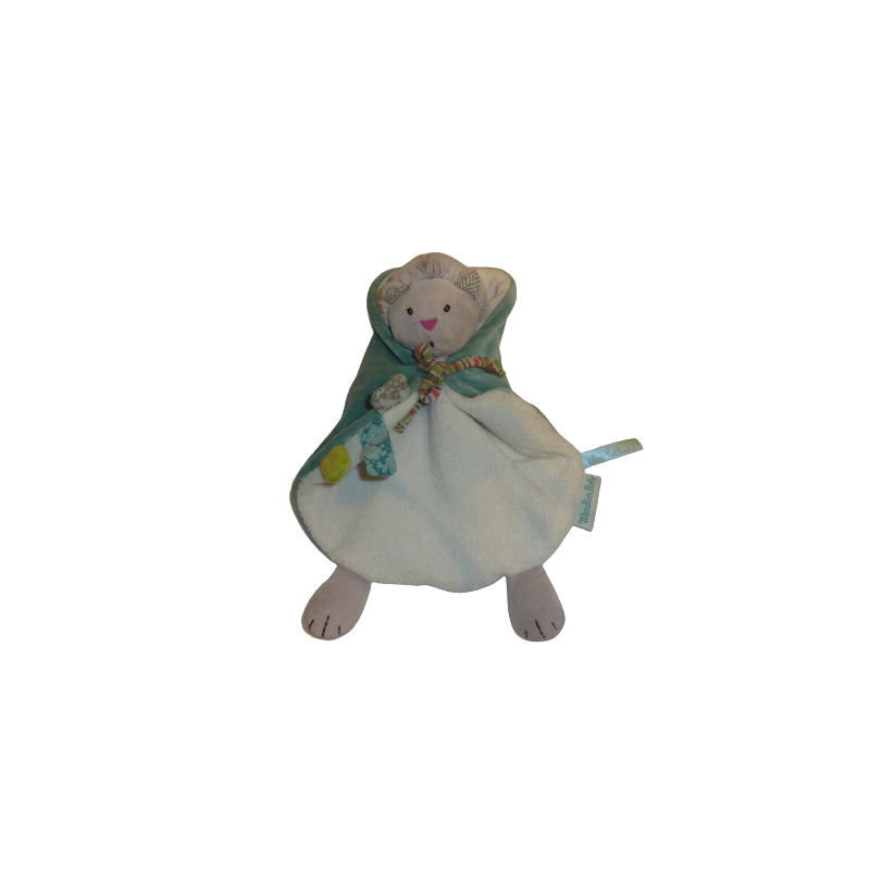Doudou plat chat 24 cm environ, vert blanc. Etat : Comme neuf (étiquette d'informations coupée). DOUDOU DIFFICILE A TROUVER.