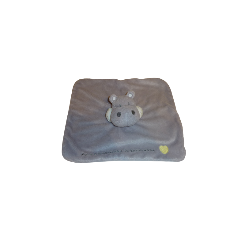 Doudou plat hippopotame 25x23 cm environ, gris. Etat : Comme neuf. DOUDOU DIFFICILE A TROUVER.