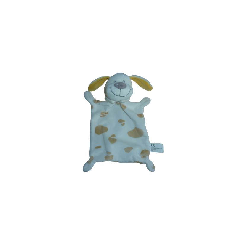 Doudou plat chien 24 cm environ, blanc jaune marron. Etat : Neuf sans étiquette boutique. DOUDOU DIFFICILE A TROUVER.