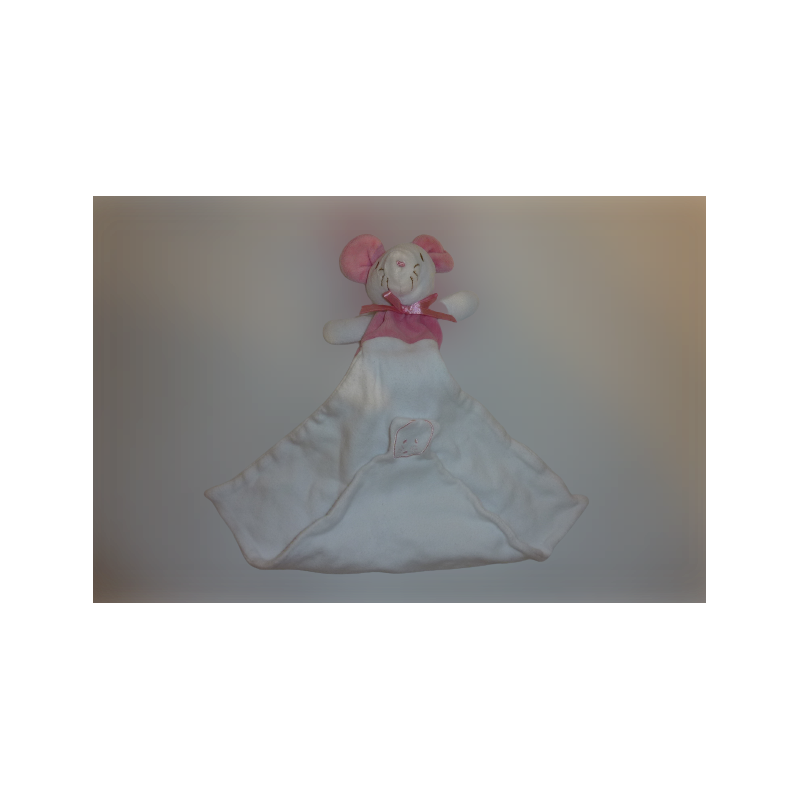 Doudou plat souris mouchoir 42 cm environ de longueur, rose blanc. Etat : Occasion Très bon état. DOUDOU DIFFICILE A TROUVER.