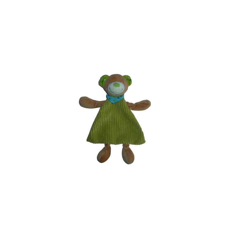 Doudou ours plat 29 cm environ, grelot, vert marron. Etat : Neuf sans étiquette boutique. DOUDOU DIFFICILE A TROUVER.Destinataire :