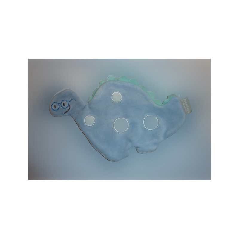 Doudou dragon plat 26 cm environ de longueur, bleu motif rond. Etat : Neuf. DOUDOU DIFFICILE A TROUVER.