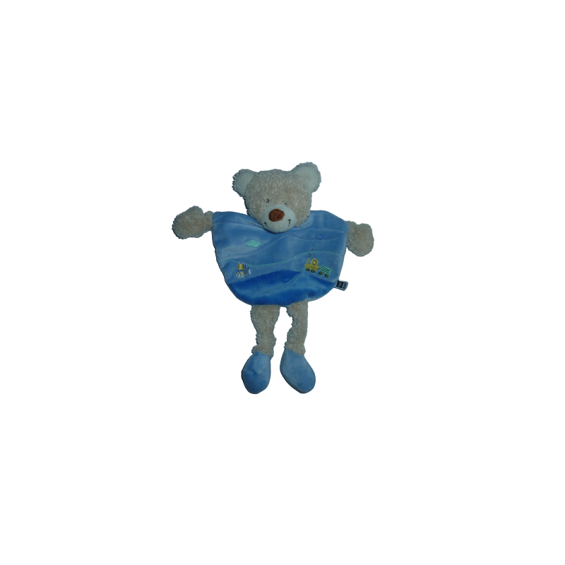 Doudou plat ours 30 cm environ, bleu motifs locomotive nuage .... Etat : Comme neuf. DOUDOU DIFFICILE A TROUVER.