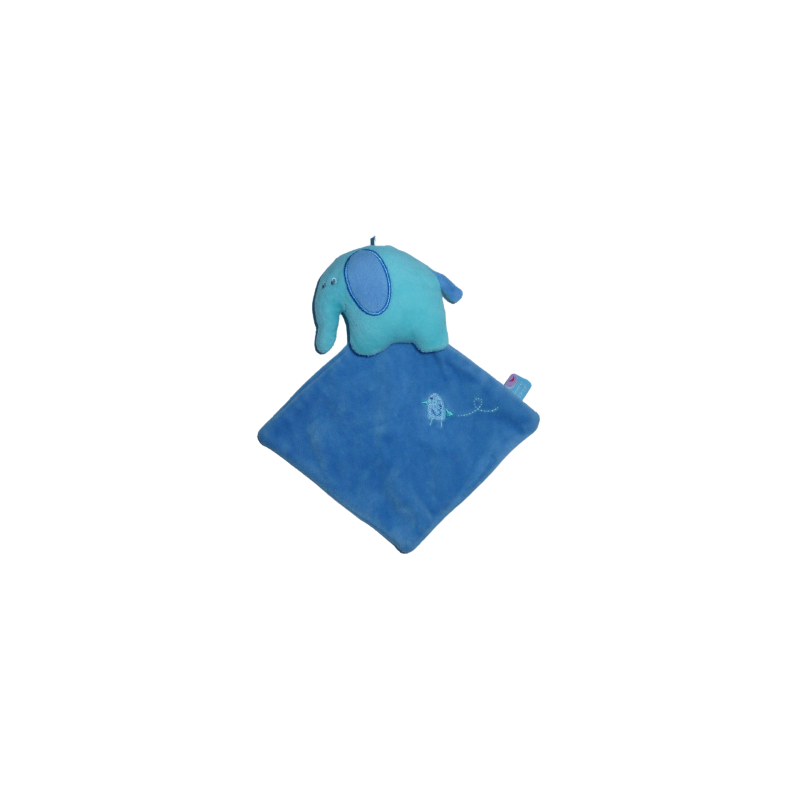 Doudou plat éléphant 21 cm environ, bleu turquoise motif oiseau brodé. Etat : Comme neuf. DOUDOU DIFFICILE A TROUVER.Destinataire :