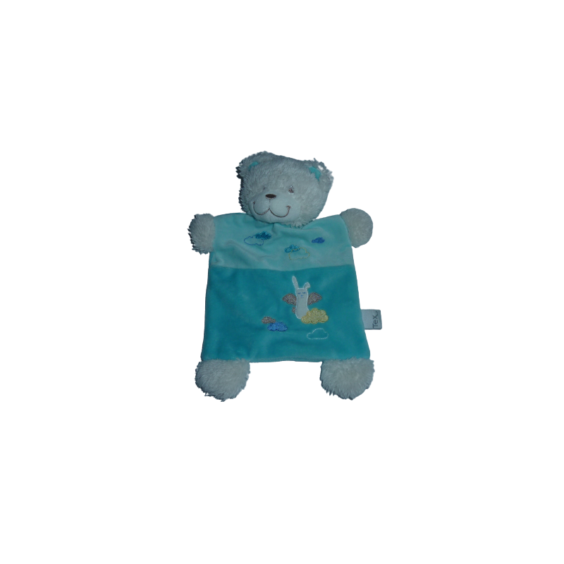 Doudou plat ours 26 cm environ, bleu turquoise. Etat : Très bon état. DOUDOU DIFFICILE A TROUVER.