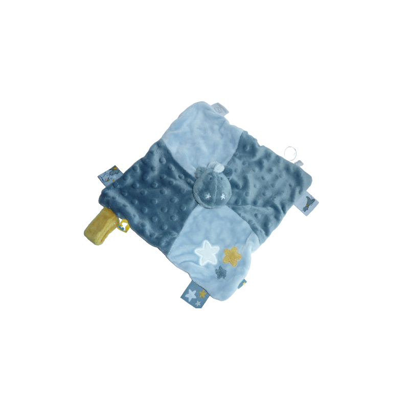 Doudou plat dragon 26x26 cm environ , bleu, attache tétine. Etat : Comme neuf. DOUDOU DIFFICILE A TROUVER.