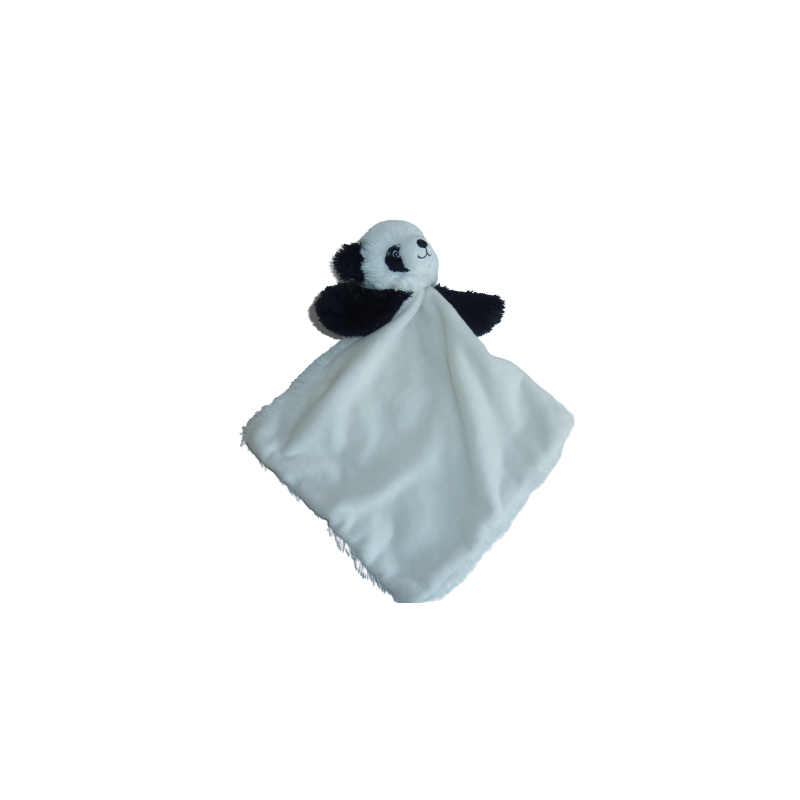 Doudou plat panda forme losange 33 cm environ, blanc noir. Etat : Neuf. DOUDOU DIFFICILE A TROUVER
