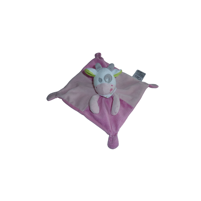 Doudou plat vache 22x22 cm environ, rose motif pois. Etat : Comme neuf. DOUDOU DIFFICILE A TROUVER
