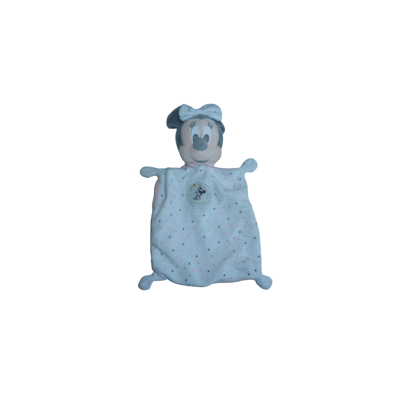 Doudou plat souris Minnie 25 cm environ de longueur, rose blanc imprimé étoiles. Etat : Comme neuf (étiquette de la marque coupée). DOUDOU DIFFICILE A TROUVER