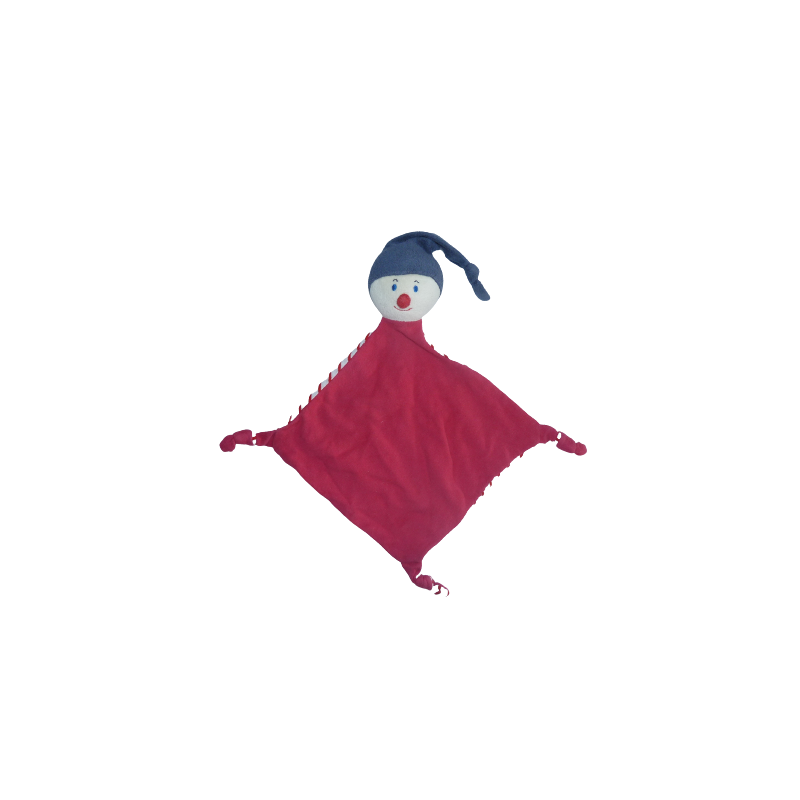 Doudou plat lutin rouge et rayures rouges et blanches, forme losange 3 nouages 36 cm environ sans compter le bonnet. Etat : Très bon état. DOUDOU DIFFICILE A TROUVERDestinataire :
