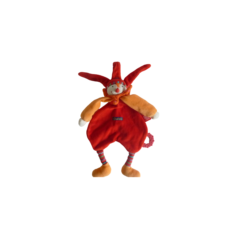 Doudou plat lutin Dragobert, anneau de dentition, rouge orange , attache tétine par bouton pression. Etat : Très bon état. DOUDOU DIFFICILE A TROUVERDestinataire :