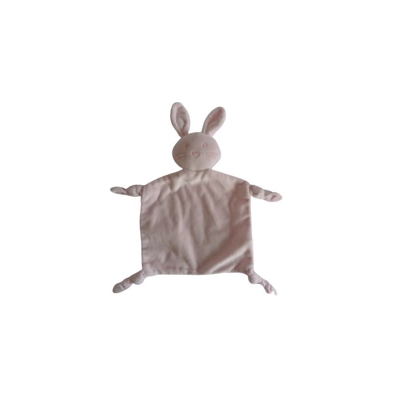 Doudou lapin plat 36 cm environ tout compris, 4 nouages, rose imprimé blanc fleuri. Etat : Comme neuf. DOUDOU DIFFICILE A TROUVER