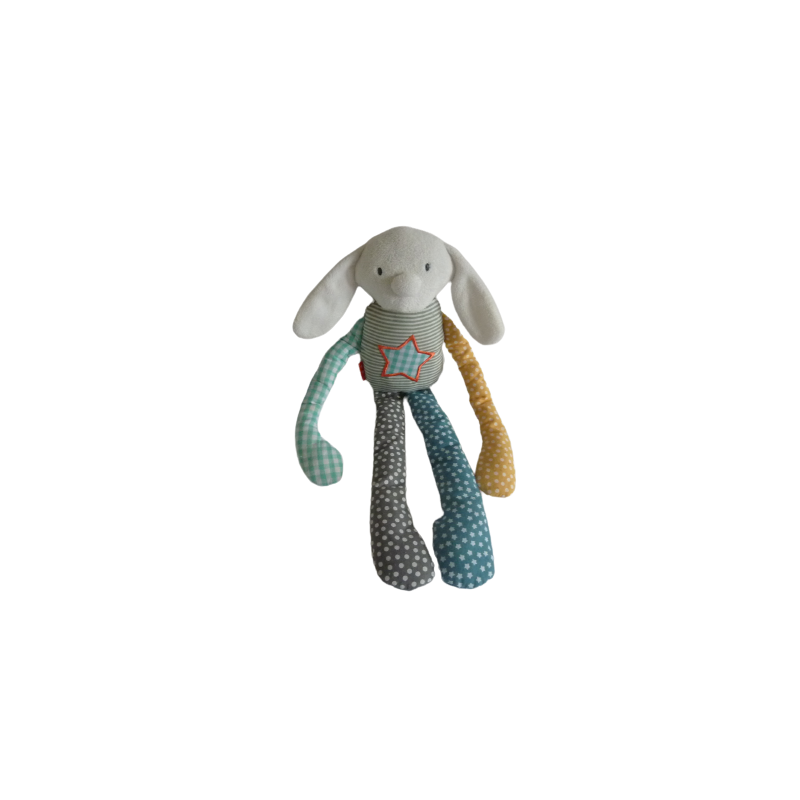 Doudou peluche lapin 35 cm environ, multicolore. Etat : Comme neuf. DOUDOU DIFFICILE A TROUVER